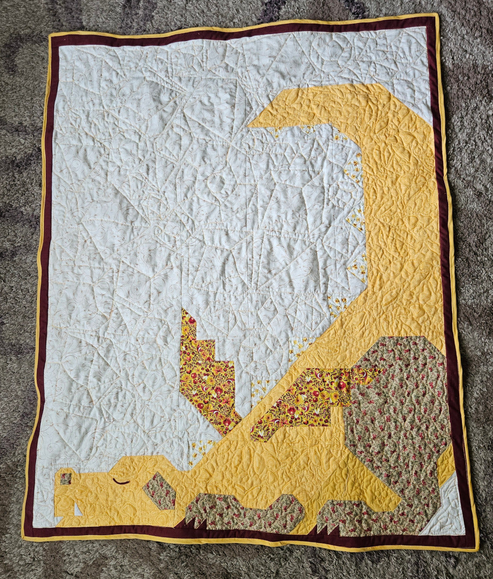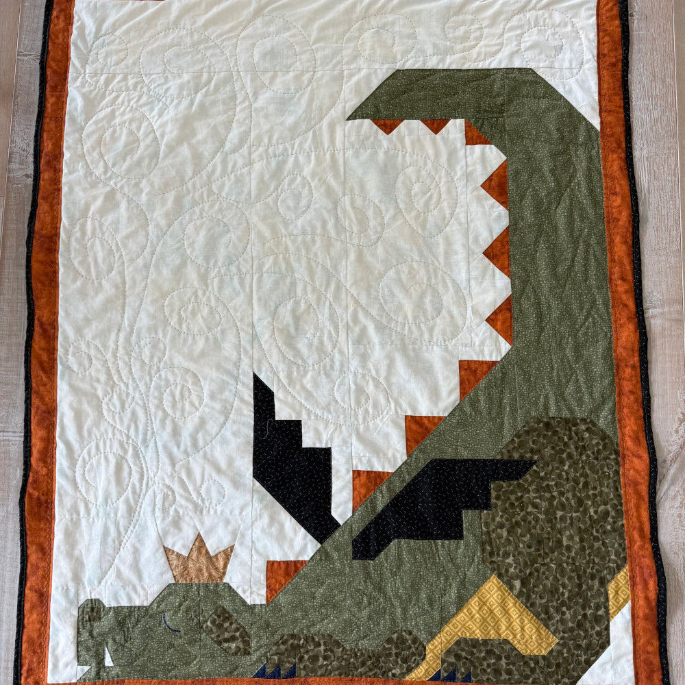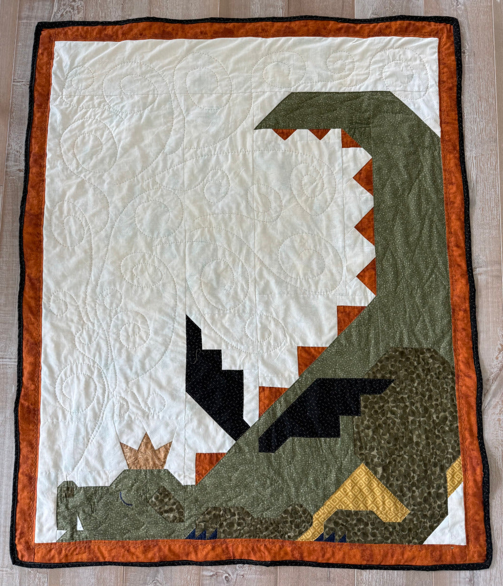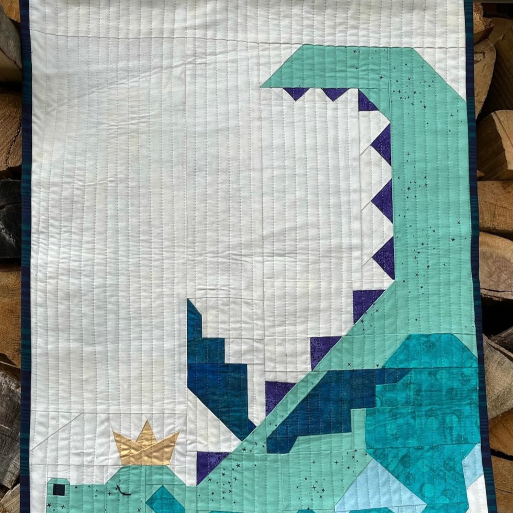 “I've always wanted to make the dragon quilt. One day when I was once again looking at a picture of the pattern I sent it to my son who lives in Chicago and I told him I really wanted to make this one day. Their reply was a picture of a stuffed dragon that was toted around by a lovely 3-year-old who is a close family friend. They said “this is Dexter. He has been this little guy’s favorite toy since birth.” So that was all the inspiration I needed to