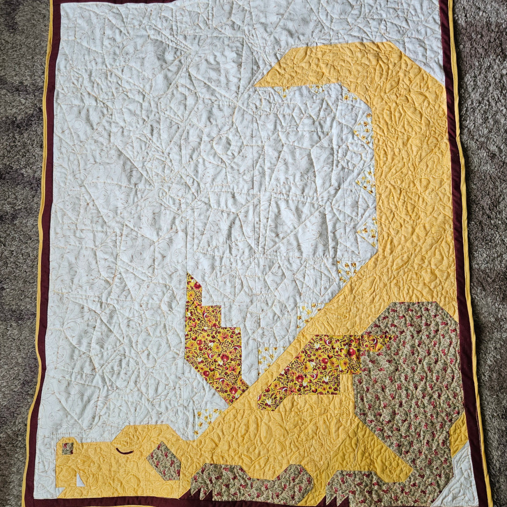 "I made this quilt for my great-grandson. He has trouble sleeping at night, so I told him the dragon would protect him in his dreams. He loves it, and he told me it works!"