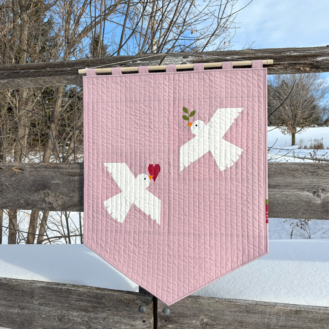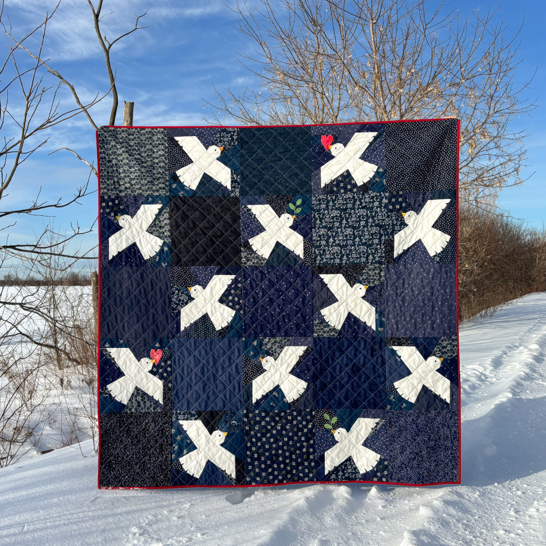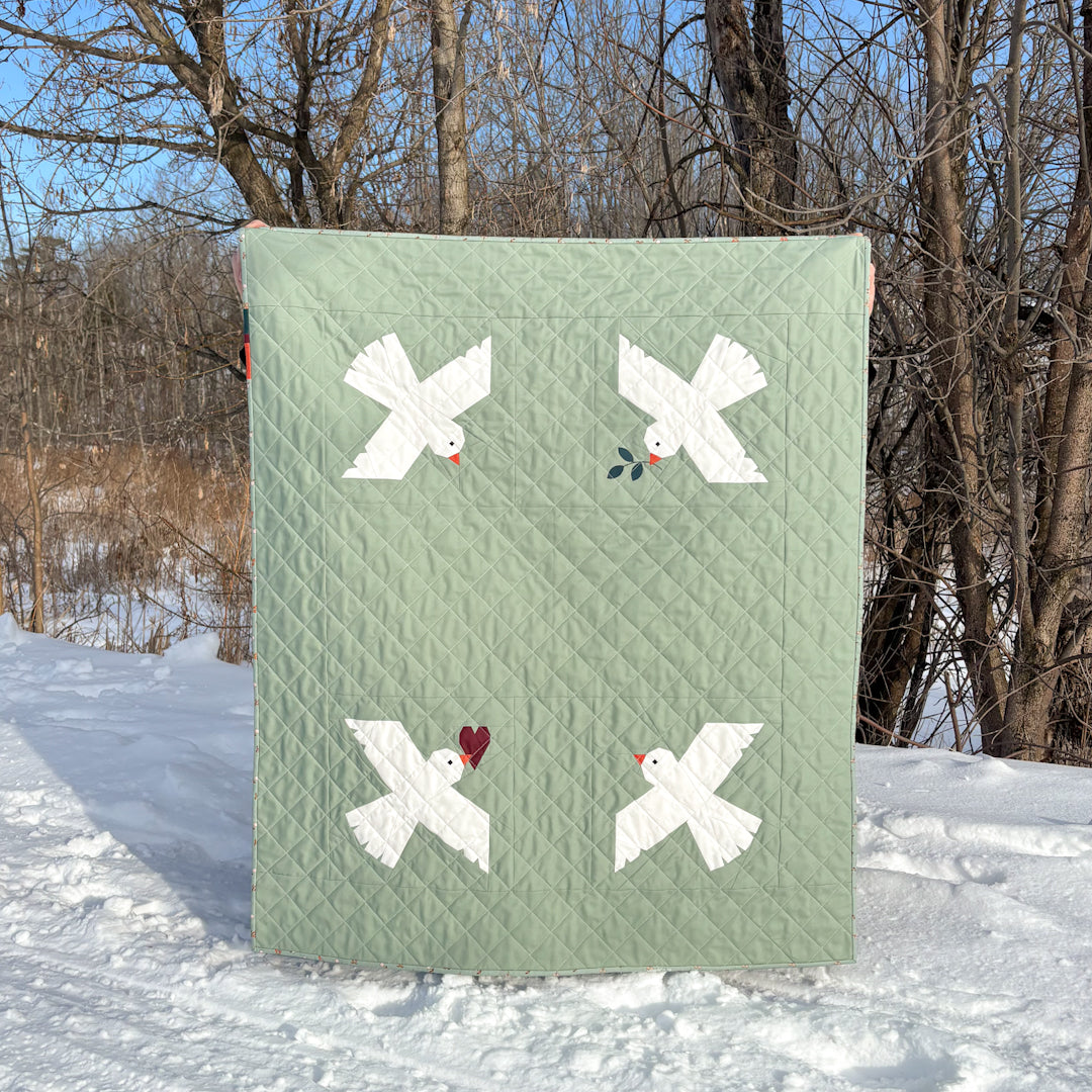 Whether you're making the crib quilt featuring four doves bringing their well wishes and blessings to the new human, the banner-shaped wall hanging or the throw, I truly wish that through piecing some beautiful doves you can find a few small moments of comfort and joy to ground yourself!