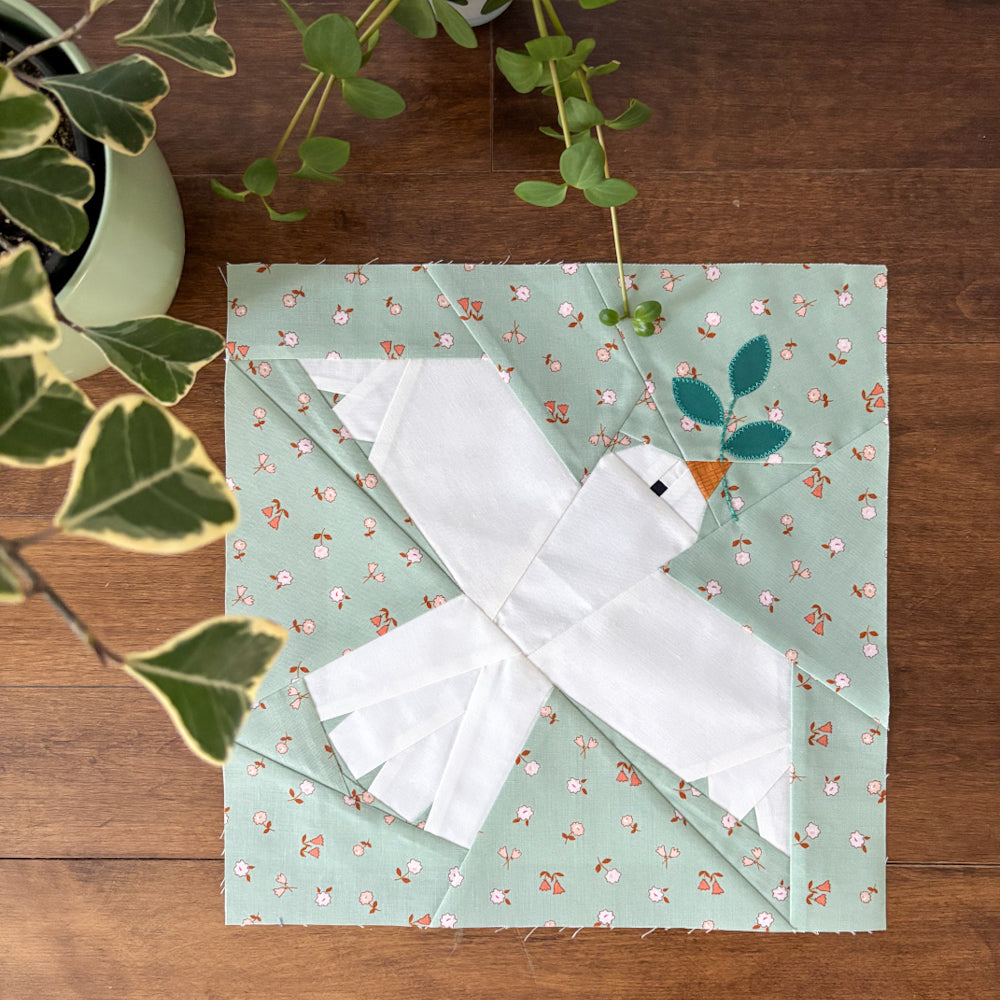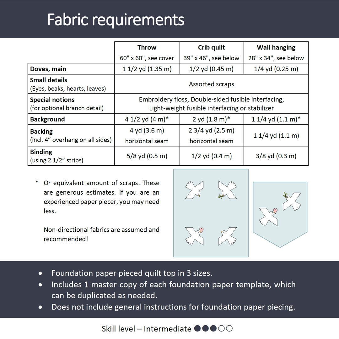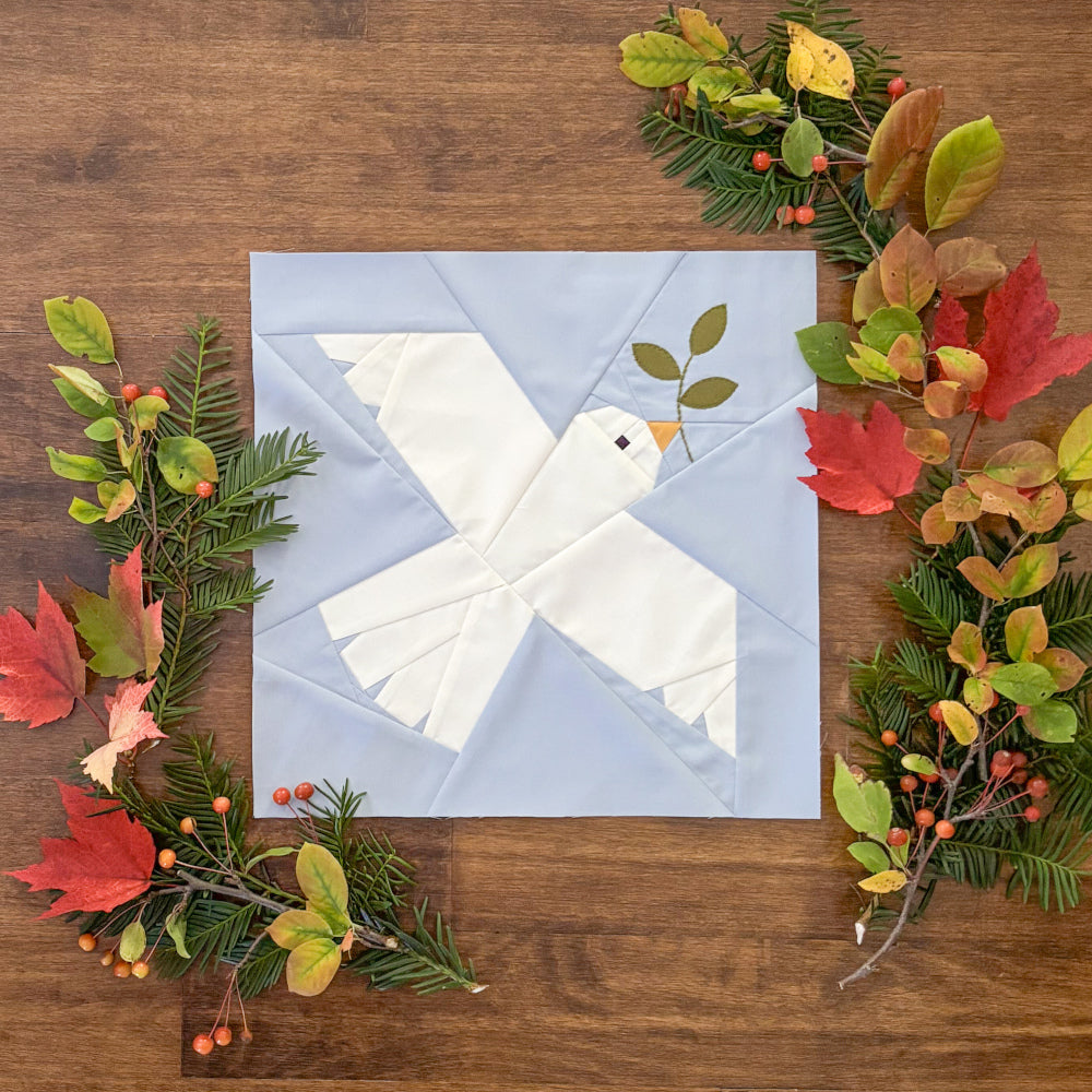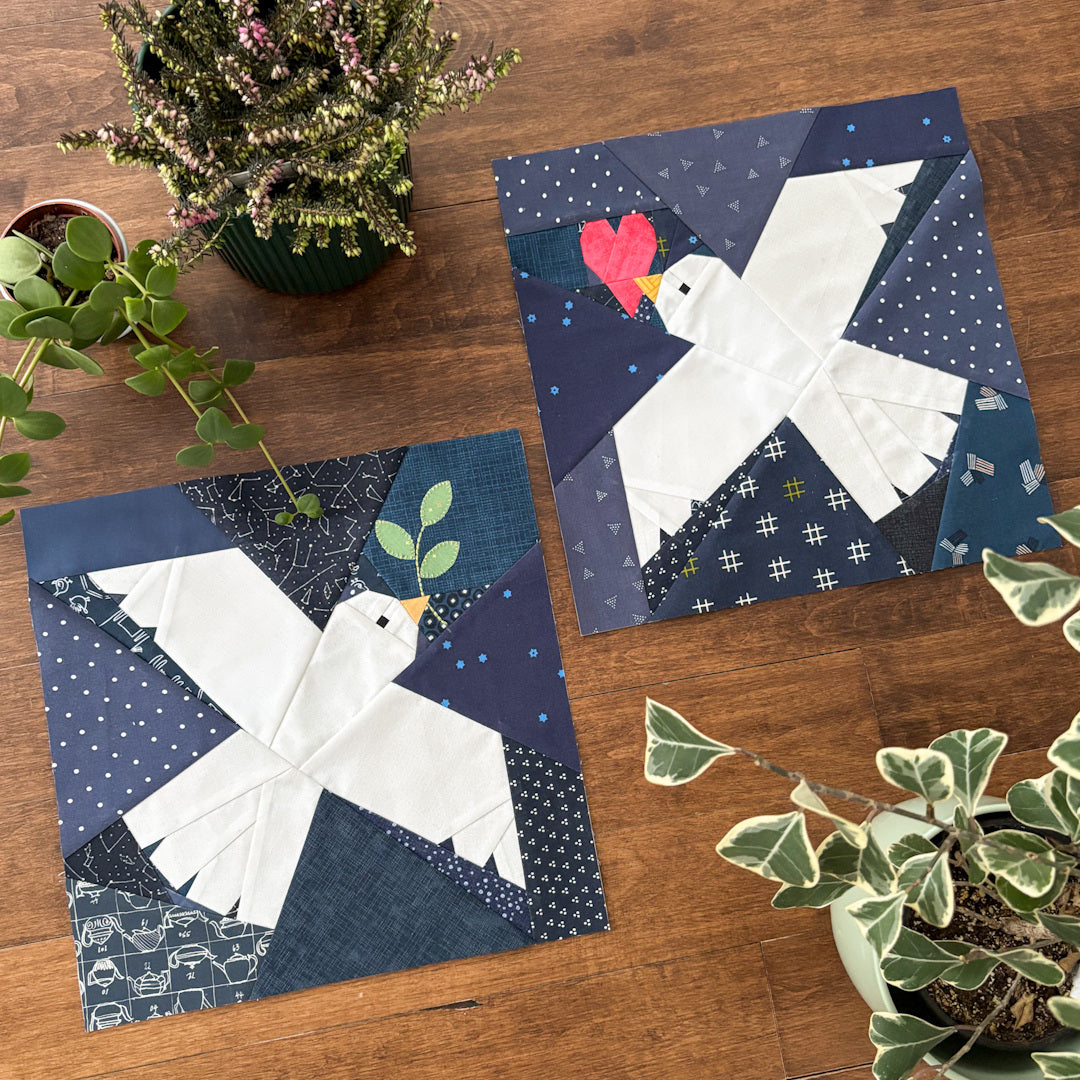 Whether you're making the crib quilt featuring four doves bringing their well wishes and blessings to the new human, the banner-shaped wall hanging or the throw, I truly wish that through piecing some beautiful doves you can find a few small moments of comfort and joy to ground yourself!